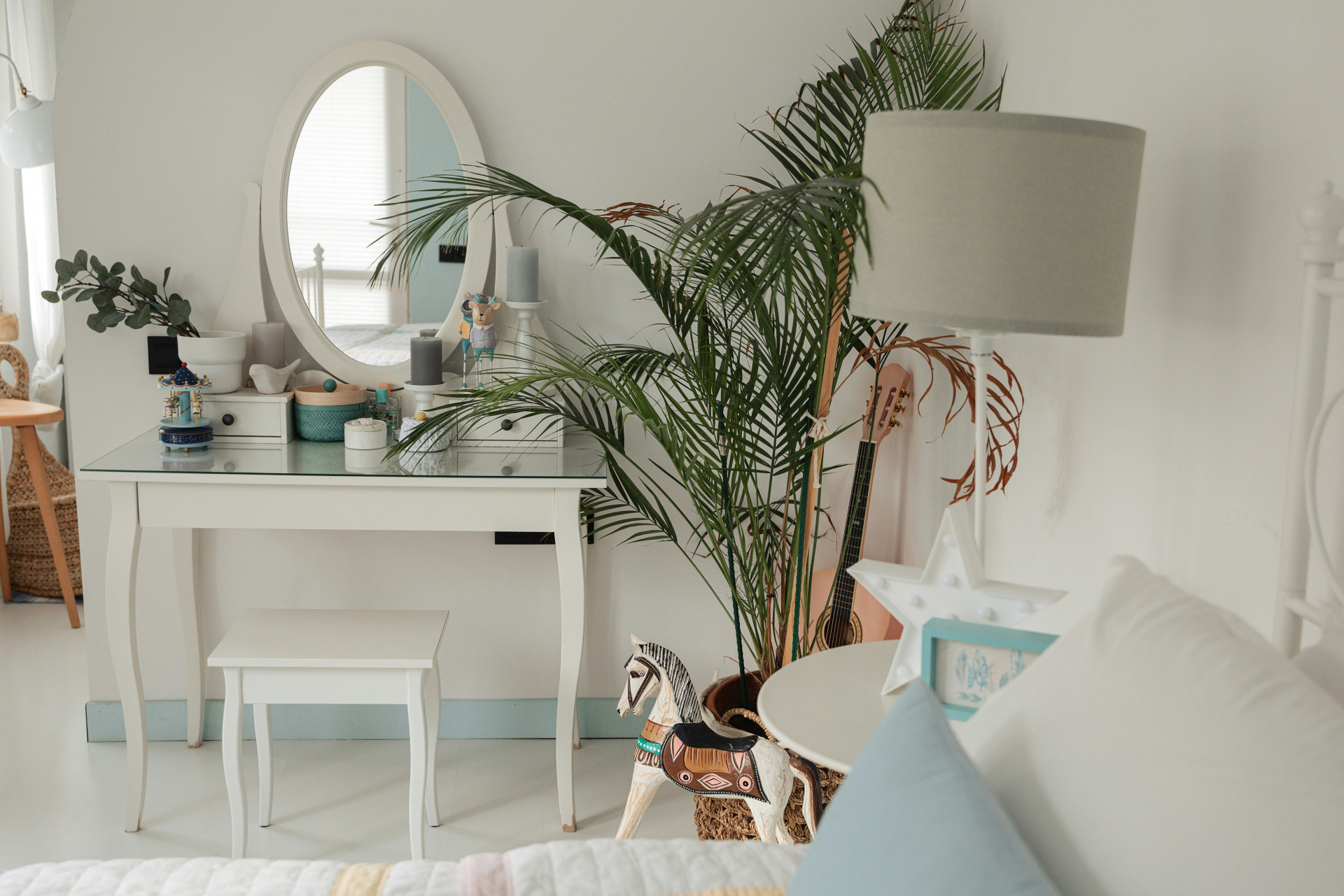 - Kombinér naturligt lys med små spotlamper, der fremhæver planter, kunst eller teksturer.